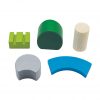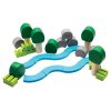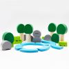 30 wooden blocks with 5 unique & different shapes imitating the shape of nature that represent trees, bushes, river and stones which can be constructed and play with other concerned blocks.
