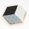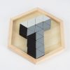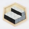 The 3D-Like Wooden Puzzle helps children to learn about two-dimensional shapes to look more dimensional from the occurrence of light and shadow from White, Grey, and Black wooden parts.