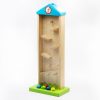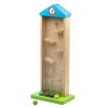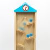 Starting by putting the ball (with the number ) one by one on the bank roof .The ball will fall down step by step and stop in a slot .