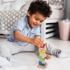 During their first year, babies discover the notion of cause and effect through their random actions. “For example, your baby might shake a noisy rattle and realize that this action is causing a reaction,”